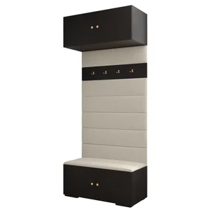 Garderoba wysoka do przedpokoju INOVA 2 Szafka na buty dołek z wieszakiem i panelami tapicerowanymi biały czarny kaszmir