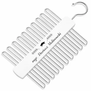 Spersonalizowany biały wieszak na krawaty z nadrukiem dla bliskiej osoby na wyjątkową okazję.