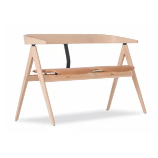 Ławka z drewna dębowego ze skórzanym siedziskiem Gazzda Ava