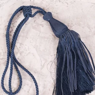 Bardzo ładne upięcie do zasłony lub firan, mogą okalać okno w jeszcze ciekawszy sposób. Wiele modeli firanek lub zasłon, które wymagają bocznego upięcia, aby ozdobić okno. W ten sposób materiał ładnie ułoży się po bokach okiennej ramy. Sznur dekoracyjny do zasłon, kolor CIEMNY NIEBIESKI. Skład: 100% poliester