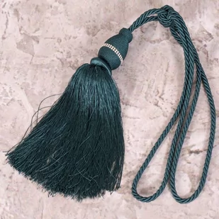 Bardzo ładne upięcie do zasłony lub firan, mogą okalać okno w jeszcze ciekawszy sposób. Wiele modeli firanek lub zasłon , które wymagają bocznego upięcia, aby ozdobić okno. W ten sposób materiał ładnie ułoży się po bokach okiennej ramy. Sznur dekoracyjny do zasłon z chwostem, kolor CIEMNY TURKUSOWY. Skład: 100% poliester