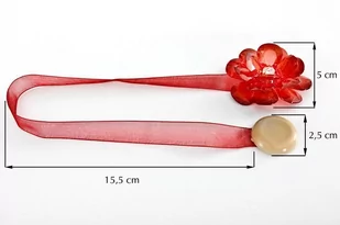 Bardzo ładne upięcie do zasłony lub firan, mogą okalać okno w jeszcze ciekawszy sposób. Wiele modeli firanek lub zasłon, które wymagają bocznego upięcia, aby ozdobić okno. W ten sposób materiał ładnie ułoży się po bokach okiennej ramy. Upinacz dekoracyjny z magnesem KWIATEK, kolor CZERWONY. Skład: 100% poliester