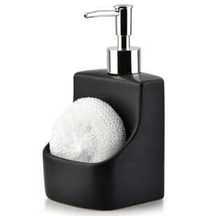 Dozownik płynu do naczyń z pojemnikiem na gąbkę i z gąbką ceramiczny czarny 400 ml kod: O-568006 - NATYCHMIASTOWA WYSYŁKA !!