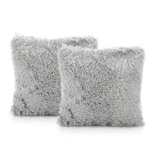 AmeliaHome Zestaw 2 poszewek na poduszki sztuczne futerko Deko 45 x 45 cm Karvag szary