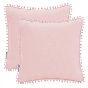 AmeliaHome 2 poszewki na poduszki z pomponami, dwustronne, pikowanie ultrasoniczne, 45 x 45 cm, Meadore pudrowy róż