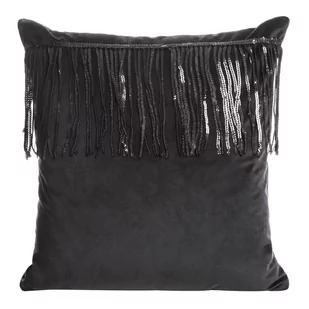 Eurofirany Poszewka dekoracyjna 45x45 Jasper czarna welurowa zdobiona połyskującym pasem czarnych cekinów