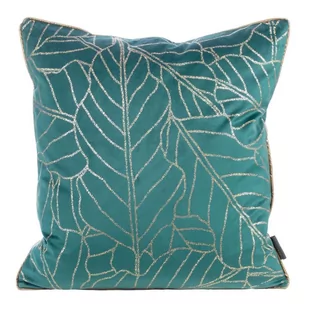 Eurofirany Poszewka dekoracyjna 45x45 Lili 1 turkusowa ze złotym nadrukiem liści welurowa Limited Collection