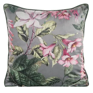 Eurofirany Poszewka dekoracyjna 45x45 Velvet 108 stalowa różowa ze wzorem kwiatowym welurowa