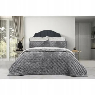 Narzuta na łóżko 250x260 szary aksamit METIS GRAY + 2 poszewki na poduszki