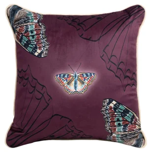 Poszewka dekoracyjna 43x43 aksamitna z lamówką kolorowe nocne motyle fiolet