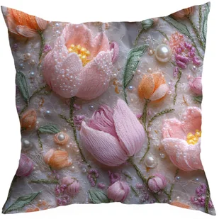 POSZEWKA DEKORACYJNA WIOSENNA 40X40 CM WIOSNA KWIATY TULIPANY WZÓR 395