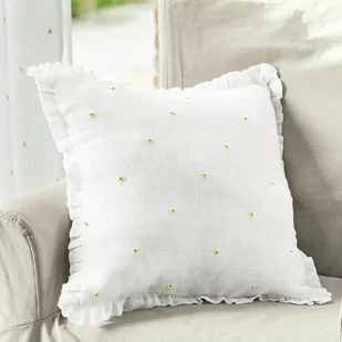 Niezastąpiony dodatek do Twojego pięknego domu: niezaprzeczalny urok tej poszewki stylowo podkreśli charakter każdego wnętrza. Cudownie miękkie i jednocześnie przepiękne połączenie lnu i bawełny zapewnia przyjemne chwile na fotelu lub sofie, na krześle ogrodowym lub na ławce. Dzięki małym, ręcznie haftowanym kwiatom i falbance poduszka w tej poszewce oczaruje każdego, kto na nią spojrzy. Doskonale pasuje do zasłony 21457 i podkładek pod talerze 21501.