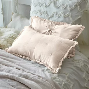 Teraz wszystkie romantyczne marzenia się spełnią! Tekstylia domowe mają przecież decydujący wpływ na styl i dobre samopoczucie w domu. Podobnie jak te dwie poszewki na poduszki w szlachetnym naturalnym duecie – wykonane z charakterystycznego lnu z przodu i czystej bawełny z tyłu. Oczarowują delikatną tonacją kolorów i pięknymi detalami i sprawiają, że ulubione, przytulne miejsca w domu przyciągają wzrok. Drobne haftowane szwy dekoracyjne nadają tkaninom ekscytującą strukturę, a figlarne falbanki tworzą dekoracyjną ramę i emanują nieodpartym urokiem. Płócienne poszewki można ozdobnie zamknąć za pomocą dwóch tasiemek do wiązania z tyłu.