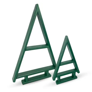 Choinka drewniana świąteczna dekoracja - Zestaw 2 sztuk - Zielona, ozdoba rustykalna, figurka - 55 cm oraz 35 cm wysokości