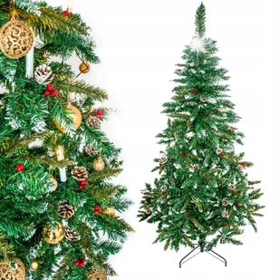 Wymiary podane w grafice obok mogą różnić się +/- 3 cm od rzeczywistych. ZALETY NASZEGO DRZEWKA Naturalny i realistyczny wygląd jodełki Piękne, żywe dwa odcienie zieleni wykończone białym śniegowym zabarwieniem Stabilna, niewywrotna metalowa podstawa o wysokości 10 cm składająca się z 4 nóżek ( 30 x 30 cm) Łatwy i szybki system mocowania. Drzewko składa się z 3 elementów (podstawa i dzielona na 2 części korona) dzięki czemu po złożeniu zajmuje niewiele miejsca. Idealne proporcje - dzięki odpowiedniej długości gałązek ten bardzo wysoki model wygląda zgrabnie Wielowarstwowa, niezliczona ilość igiełek na każdej gałązce Bogaty zestaw dodatków: naturalne delikatnie zabarwione na biało szyszki - 14 szt czerwone 3-kulkowe jarzębiny - 14 szt W trosce o pełne zadowolenie naszych klientów prezentujemy realne zdjęcia choinki.