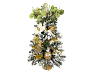 Drzewko otrzymasz już udekorowane. Wystarczy wyjąć je z opakowania, lekko wyrównać gałęzie z ozdobami i drzewko jest gotowe. Jesteś miłośnikiem ponadczasowej elegancji? Drzewko Tender Champagne składa się z ozdób, dekoracji w nowoczesnych kolorach szampana i elementów kwiatowych. Uzupełnieniem dekoracji są tradycyjne okrągłe ozdoby. Wierzchołek stanowi bukiet liści eukaliptusa połączony ze złotymi gałązkami.