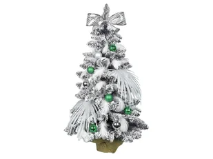 Drzewko otrzymasz już udekorowane. Wystarczy wyjąćją z pudełka, lekko dopasować gałęzie za pomocą ozdób i drzewko jest gotowe. Drzewko udekorowane w kolorze Polar Green wygląda bardzo luksusowo i dodaje prawdziwego uroku Twojemu domowi. Srebrne i białe dekoracje są wzbogacone zielonymi kulkami. Charakterystyczne białe liście i srebrna, ręcznie wykonana kokarda są efektownymi elementami.