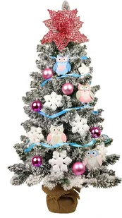 Zachwyć nawet najmłodszych, w końcu Boże Narodzenie jest dla nich. Skład zestawu 1 x udekorowana choinka Viola 60 cm z oświetleniem LED 1 x stojak na choinkę owinięty jutą Zestaw ozdób i dekoracji zawiera 16 x płatek śniegu na drucie 7,5 cm, kolor biały, materiał plastik 12 x okrągła ozdoba 4 cm mix, kolor różowy, materiał plastik 8 x sowa 7,5 cm mix, kolor mix, materiał metal 1 x kwiatek na klipsie 18 cm, kolor różowy, materiał plastik 1 x sznurek 20 m, kolor jasnoniebieski, materiał tekstylny 38 sztozdoby i dekoracje Dlaczego warto kupić udekorowaną choinkę? 1. otrzymasz drzewkojuż udekorowane. 2. Wystarczy wyjąć ją z pudełka, lekko dopasować gałęzie za pomocą ozdób i drzewko jest gotowe. 3. Oszczędność czasu, nie musisz sam dekorować drzewka.