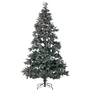 Sztuczna choinka z ośnieżonymi gałązkami, szyszkami i owocami ostrokrzewu. Przygotuj sobie prawdziwie wesołe święta, dekorując swój dom tradycyjną zieloną choinką. Ozdobiona sztucznym śniegiem, szyszkami i owocami ostrokrzewu, nie potrzebuje wielu bombek, by wyglądać pięknie - wystarczy, że owiniesz ją światełkami, a pod spód schowasz prezenty. Choinka wykonana jest z niewymagającego skomplikowanej pielęgnacji syntetycznego materiału oraz posiada pasującą metalową podstawę z gumowymi nasadkami ochronnymi, która nie porysuje podłogi. Szczegóły: Typ produktu: