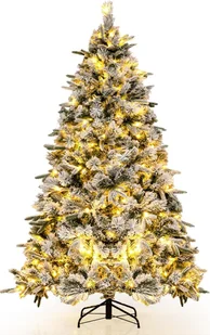 COSTWAY Sztuczna choinka 180cm ze śniegiem, choinka z 250 ciepłymi białymi diodami LED, 752 mieszane końcówki gałązek, sztuczna choinka bożonarodzeniowa
