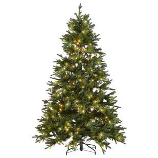 Choinka z ciepłymi białymi światłami. Ciesz się wspaniałym wyglądem choinki rok po roku przy minimalnej konserwacji. Choinka wykonana jest z wytrzymałego tworzywa sztucznego, co gwarantuje łatwy montaż i praktyczne przechowywanie. Metalowa podstawa zapewnia również stabilność. Giętkie gałęzie można dowolnie regulować, aby uzyskać pełniejszy wygląd.