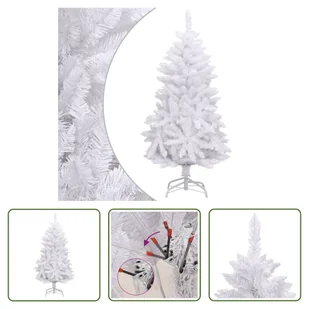 The Living Store Sztuczna choinka z zawiasami i stojakiem - biała - 120 cm - Sztuczna Choinka