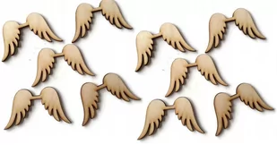 Skrzydła ze sklejki o wymiarach 7 x 4 cm. Zestaw 10 sztuk. Idealne na prezent czy do dekoracji! Dane techniczne: Sklejka brzozowa | Kolor naturalny Wymiar 7 x 4 cm Grubość: 3 mm Wycinane laserowo Na Państwa życzenie możemy przygotować inne dekoracje ze sklejki, świeczniki drewniane, plastry drewna różnych rozmiarów oraz grubości.