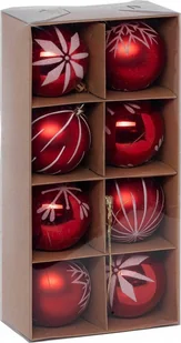 Zestaw czerwonych bombek z białym wzorem, Ø 8 cm