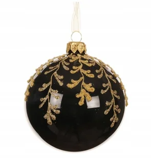 Bombka choinkowa szklana 8 cm czarna ze złotym zdobieniem 1 szt.