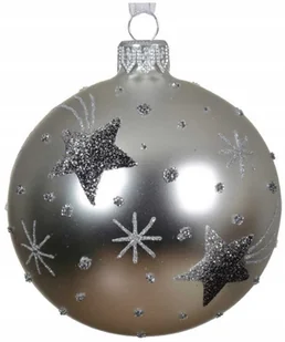 Bombka choinkowa szklana 8cm Srebrna z gwiazdkami
