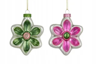 Bombka choinkowa szklana kształtka kwiatek różowa zielona duża 10,6cm 1szt