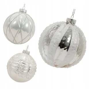 Bombka choinkowa szklana srebrna dekorowana duża 10cm 1szt