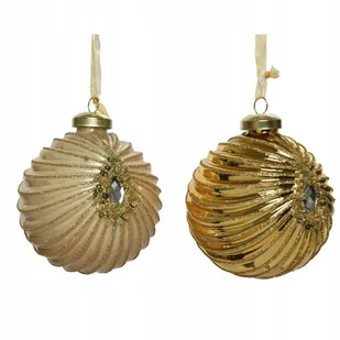 Bombka na choinkę 8 cm Bombka na choinkę będzie idealnym dopełnieniem wystroju Twojego bożonarodzeniowego drzewka. Zawieszka świąteczna może posłużyć także do ozdobienia pomieszczeń, nadając im świąteczny klimat, jednocześnie czyniąc dom przytulnym i ciepłym. Parametry: szerokość: 8 cm materiał: szkło kolor: złoty, kremowy zastosowanie: