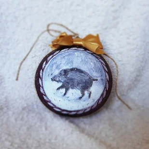 Bombka jest częścią cyklu Zwierzęta zimowe. Przedstawia dzika - naszego leśnego i przyleśnego towarzysza. Jest to bombka szklana o średnicy 12 cm. Malowidło jest wykonane ręcznie ...