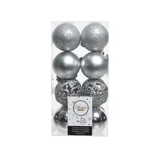 Bombka plastikowa srebrna mat/połysk/brokat 6 cm 16 sztuk