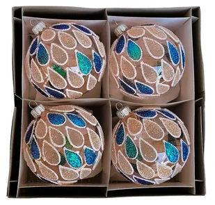 Komplet 4 kolorowych bombek. Zostały wykonane z dmuchanego szkła i ręcznie ozdobione. Każda z nich jest inna ze względu na tradycyjne wykonanie i indywidualne zdob ...