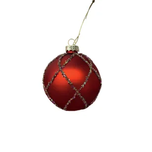 Bombka szklana dekorowana kryształkami krata 8 cm czerwony