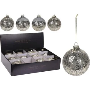 Bombka szklana dekorowana z złotymi cekinami szara 8 cm mix