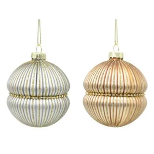 Bombka szklana karbowana 8 cm srebrna/złota 1 szt.