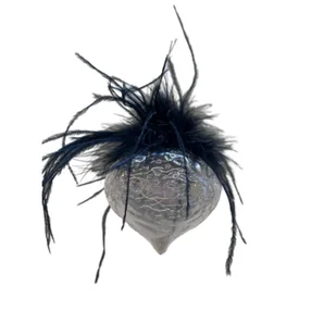 Bombka szklana z czarnymi piórami dekorowana 8 cm transparentna