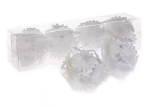 Bombki brokatowe białe - kwiat 6 cm x 4 szt