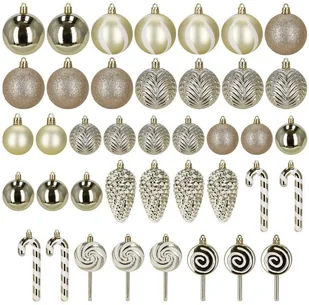 Bombki choinkowe kształtki 40 szt. okrągłe, lizaki, szyszki, laski cukrowe złote