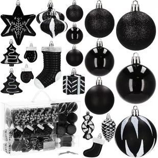 Bombki w czarnym kolorze znakomicie wyróżnią się na tle kontrastujących z nią zielonych gałązek świątecznego drzewka. Parametry: Marka: Springos Kolor: czarny Materiał: tworzywo sztuczne Ilość: 77 sztuk bombek (+/- 1 bombka) Wzory: