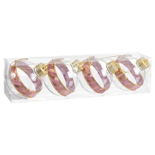 Bombki choinkowe różowe przezroczyste złote plastikowe kokardki 8 x 8 x 8 cm (4 sztuki)