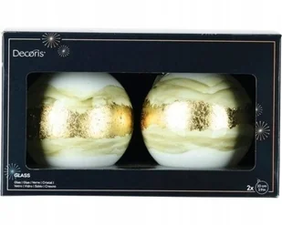 Bombki choinkowe szklane 10 cm białe ze złotym pasem zestaw 2 sztuki