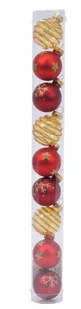 Parametry: Szerokość bombki: 3 cm Materiał wykonania: szkło Motyw: bombki świąteczne Kolor dominujący: czerwony, złoty Ilość sztuk: