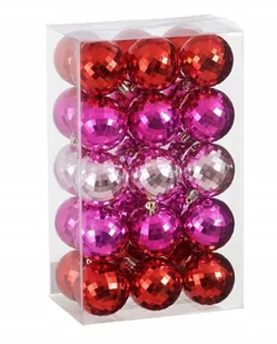 Bombki choinkowe zestaw 30 szt. różowe czerwone i srebrne 6 cm lustrzane