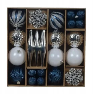 Bombki choinkowe zestaw 46 szt. niebiesko srebrno białe różne wzory