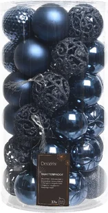 37 bombek choinkowych Kolor: ciemnoniebieskijednokolorowe bombki choinkowe, nietłukące, z brokatemUdekoruj swoją choinkę tymi pięknymi bombkami choinkowymi. Odporne na stłuczenie ozdoby choinkowe można łączyć z dowolnymi innymi bombkami świątecznymi. Zestaw bombek świątecznych nadaje się jednak nie tylko jako ozdoby choinkowe, ale także jako bombki dekoracyjne. Ozdobią wieniec adwentowy lub świąteczny stół.