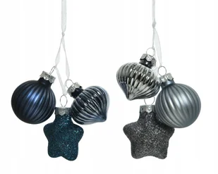 bombki świąteczne Kolor dominujący: odcienie niebieskiego Ilość sztuk: 3 Zastosowanie: świąteczna ozdoba wnętrza domu, choinki